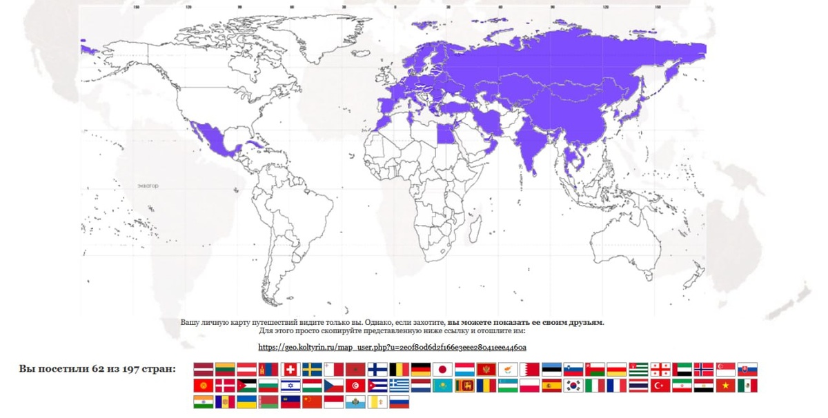 Что-то казалось так много - 62 страны. А на карту посмотришь и понимаешь, как мало я еще повидала...