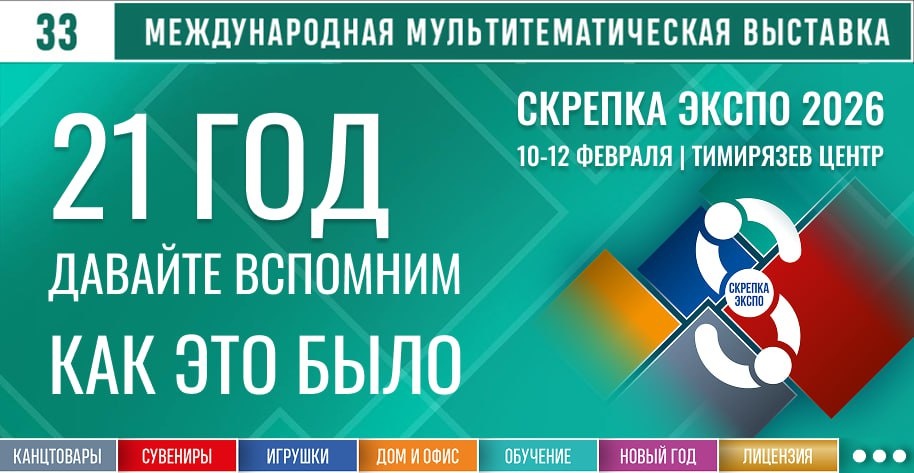 <iframe width="480" height="270" src="https://dzen.ru/embed/orUaCV3sJAAA?from_block=partner&from=zen&mute=0&autoplay=0&tv=0" allow="autoplay; fullscreen; accelerometer; gyroscope; picture-in-picture; encrypted-media" data-testid="embed-iframe" frameborder="0" scrolling="no" allowfullscreen></iframe> В 2004 году мир увидел «Фабрику звёзд», Мария Шарапова покорила Уимблдон, а в Москве стартовала первая Скрепка Экспо! Первые 4 600 м², 2 500 гостей, семинары, фуршеты и первые дипломы – всё начиналось с искры – идеи объединить индустрию. За 21 год от узкоспециализированной выставки – к масштабной мультиотраслевой B2B-платформе, где канцелярия соседствует с игрушками, сувенирами, творчеством, новогодним декором и детской книгой. Мы росли и собирали под одним крылом лучших из лучших: производителей, дистрибьюторов, ритейлеров и визионеров. Сегодня Скрепка Экспо – это точка сборки индустрии, место, где рождаются тренды и заключаются сделки, которые двигают бизнес вперед. И всё это – благодаря