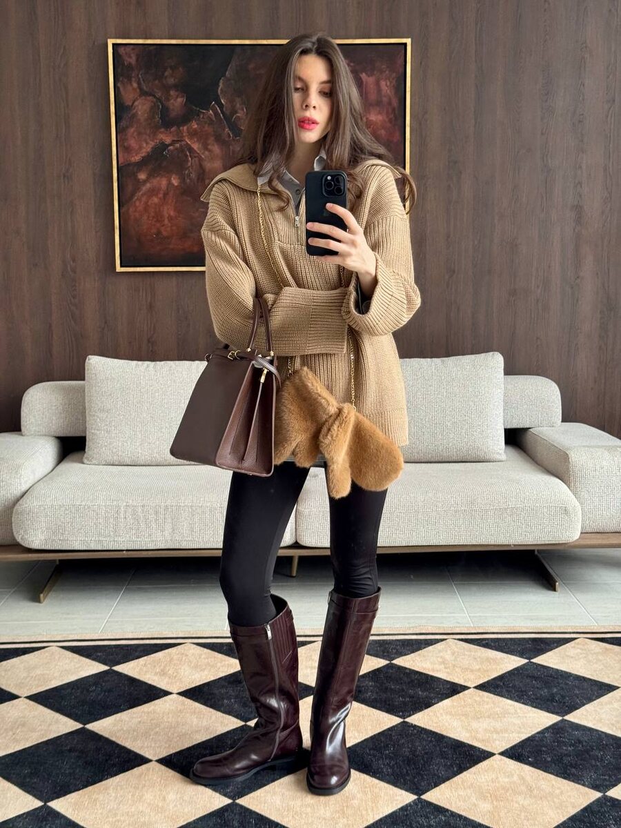 4 образа на каждый день Наташа собрала четыре повседневных образа — простых, уютных и легко сочетающихся между собой. 1. Свитер из шерсти на молнии и рубашка — мягкое сочетание для уюта. 2. Свитер с воротником-стойкой + брюки из экозамши в песочном оттенке + базовая белая рубашка — собранно, но без лишней строгости. 3. Рубашка в цветную клетку + джинсы relaxed fit — образ с ощущением легкости и уверенности. 4. Рубашка в мелкую клеточку + джинсы с потертостями + жакет в пастельном оттенке — для тех, кто любит слои и мягкий контраст фактур. Выберите свой вариант — для дней, когда хочется тепла и уюта.