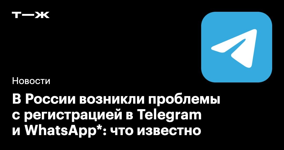 Российские операторы перестали пропускать звонки и смс для регистрации новых пользователей в Telegram и WhatsApp*. Они нужны для регистрации новых пользователей и авторизации существующих. Это уже третий этап ограничения работы мессенджеров: с 13 августа Роскомнадзор блокирует звонки в Telegram и WhatsApp*, а с 22 октября частично ограничил другие функции приложений. Собрали все, что известно на данный момент: https://t-j.ru/tg/tgwapp-bezsms-i-registraci/ * Мессенджер WhatsApp принадлежит Meta — организации, деятельность которой признана экстремистской и запрещена на территории РФ.