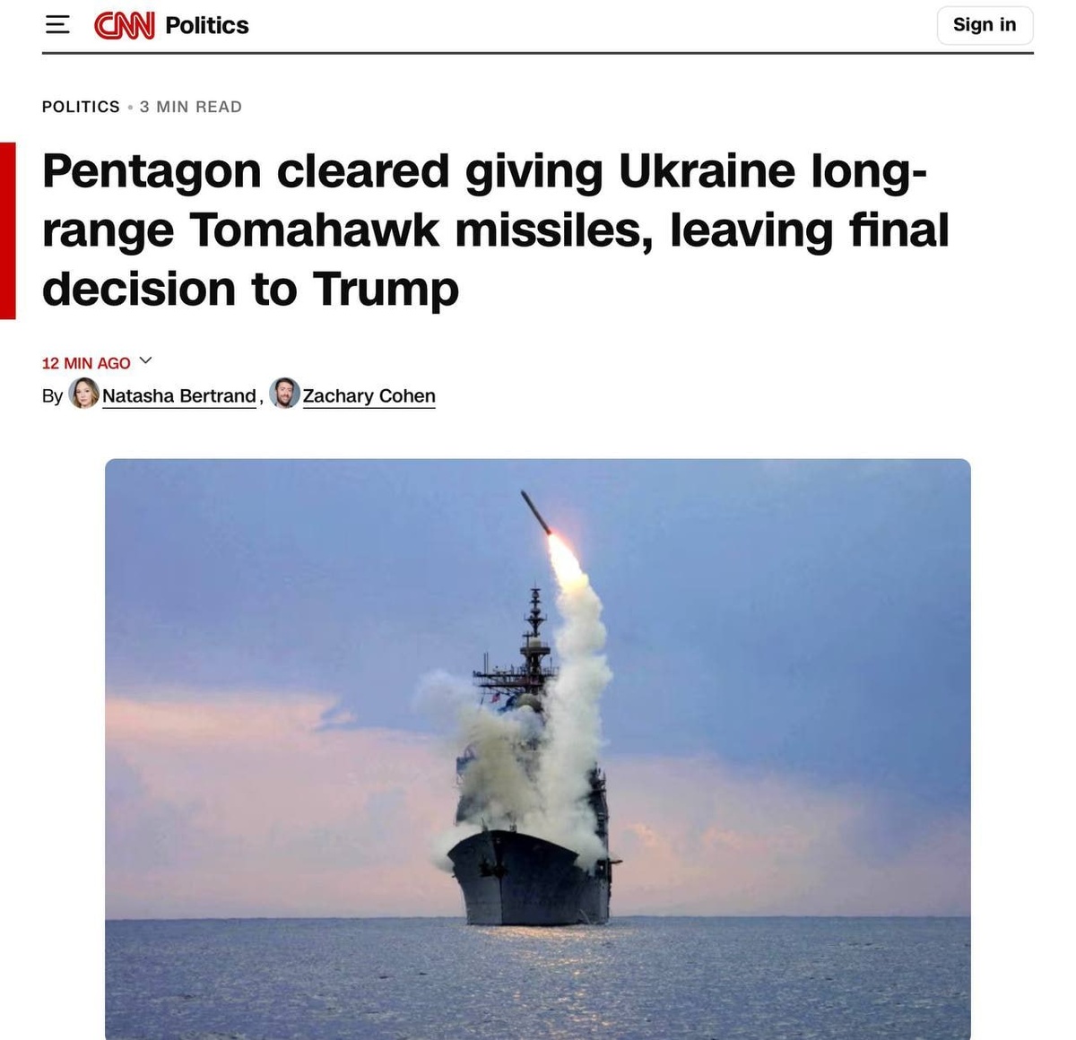 πΊπΈ ΠΠ΅Π½ΡΠ°Π³ΠΎΠ½ ΠΎΠ΄ΠΎΠ±ΡΠΈΠ» ΠΏΠΎΡΡΠ°Π²ΠΊΡ Π£ΠΊΡΠ°ΠΈΠ½Π΅ ΡΠ°ΠΊΠ΅Ρ Tomahawk, Π½ΠΎ ΠΎΠΊΠΎΠ½ΡΠ°ΡΠ΅Π»ΡΠ½ΠΎΠ΅ ΡΠ΅ΡΠ΅Π½ΠΈΠ΅ ΠΏΡΠΈΠΌΠ΅Ρ Π’ΡΠ°ΠΌΠΏ, β CNN