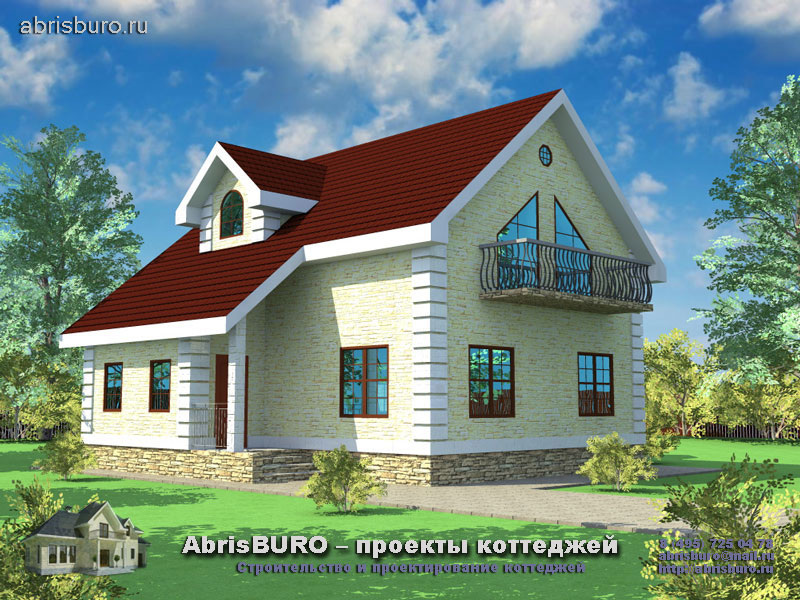 Проект К014-99 мансардного компактного коттеджа с балконом