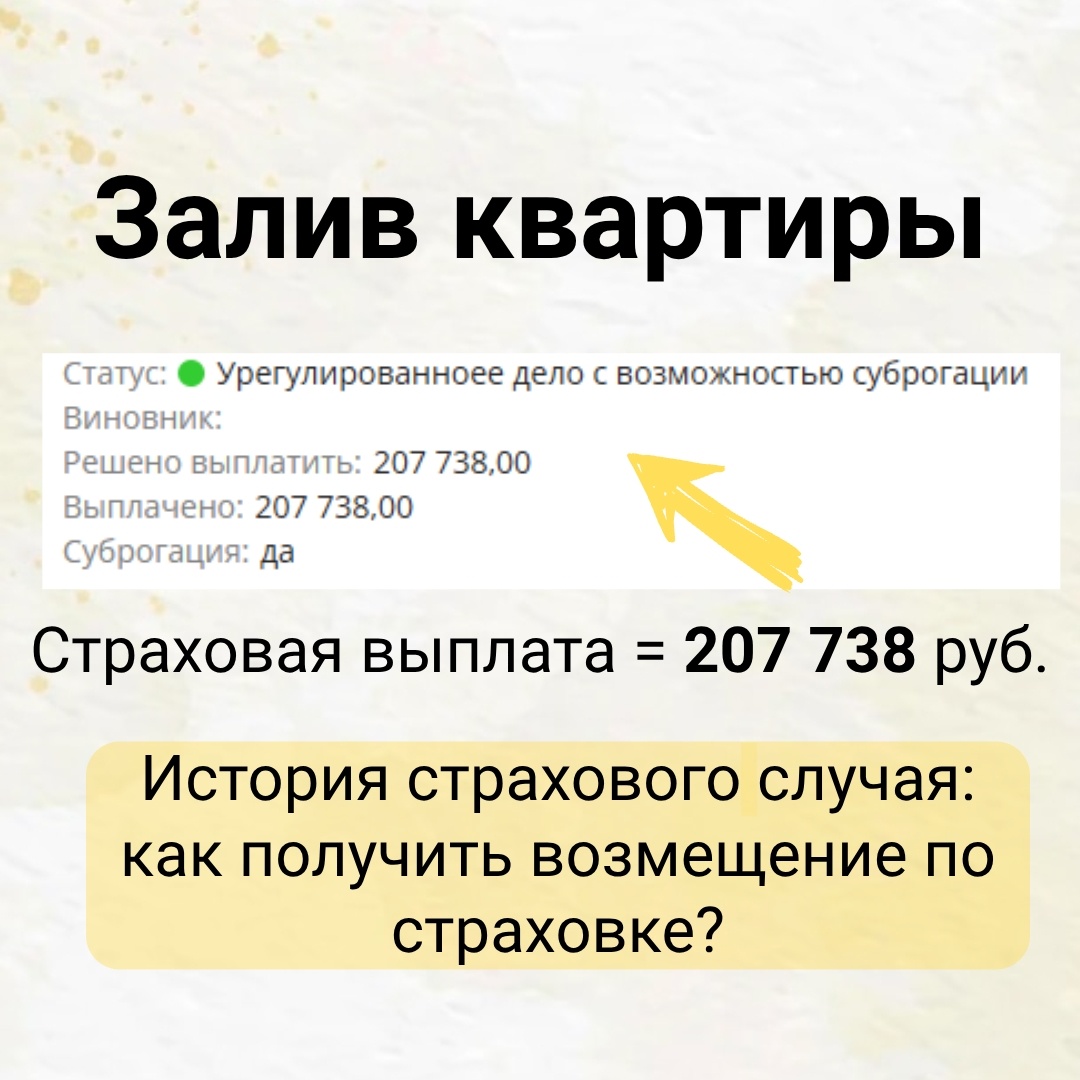 Как клиент получил страховую выплату за залив квартиры 207 738 руб? 💦