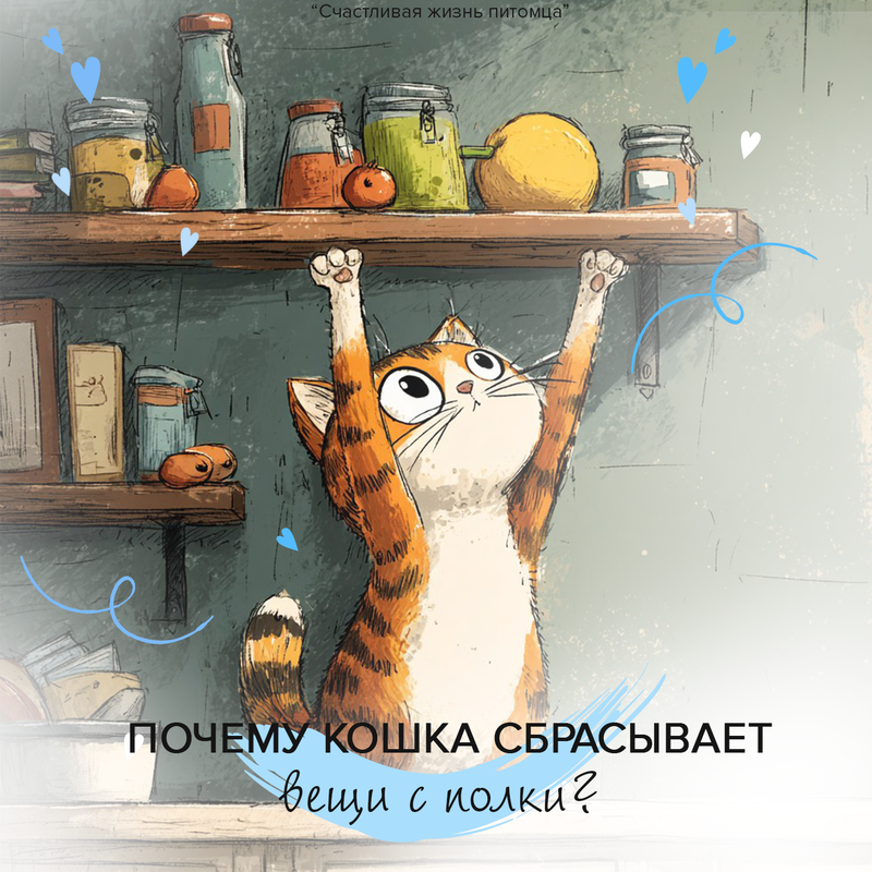 Иногда кошка просто хочет поиграть. Карандаш, который покатился, пузырёк с таблетками, чашка — всё это превращается в «игрушку». Так питомец развлекается, потому что альтернативы нет.