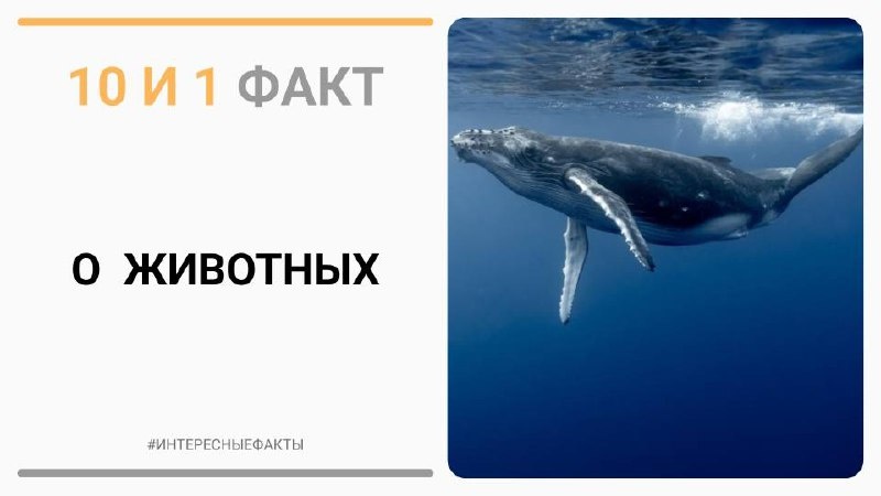 🐾 10 и 1 факт о животных 1. Пингвины не могут летать, но являются отличными пловцами, проводя большую часть своей жизни в воде. 2. Коты могут издавать свыше 100 различных звуков, тогда как собаки ограничены примерно 10. 3. Синие киты, крупнейшие существа на планете, могут достигать длины до 30 метров и веса до 200 тонн. 4. Курицы видят больше цветов, чем люди, включая ультрафиолетовые оттенки, что помогает им находить корм. 5. Отпечаток носа собаки уникален, как и отпечатки пальцев у человека, что может использоваться для идентификации. 6. Осьминоги обладают удивительной способностью изменять цвет и текстуру своей кожи в ответ на окружающую среду. 7. Страусы имеют самые большие глаза среди наземных животных, что помогает им хорошо видеть на большие расстояния. 8. Медузы существуют более 500 миллионов лет, что делает их одними из древнейших существ на Земле. 9. Корма (птицы) могут спать с открытыми глазами, благодаря особой структуре глаз, что помогает им оставаться настороженными. 10