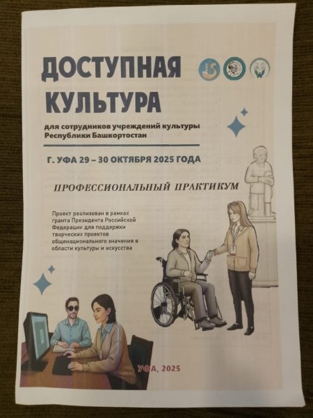 29-30 октября научный сотрудник Гайсарова Л.Т. на базе Башкирской республиканской специальной библиотеки для слепых имени Макарима Тухватшина прошла профессиональное обучение-практикум, которое направлено на повышение доступности и комфорта культурных учреждений для граждан с ограниченными возможностями здоровья (ОВЗ). Проект реализован в рамках гранта Президента Российской Федерации по созданию онлайн-платформы «Доступная культура». В ходе обучения прослушаны методы современного подхода к взаимодействию с людьми с ОВЗ, что позволит нам в дальнейшем обеспечить инклюзивность социокультурной среды в музее. В рамках практикума посещены музей Уфы: Национальный музей Республики Башкортостан, музей археологии и этнографии Института этнологических исследований УФИЦ РАН им. Р.Г. Кузеева, Башкирский государственный художественный музей им. М.В. Нестерова и исторический парк «Россия Моя история», что позволило рассмотреть услуги обслуживания… https://uchaly102.ru/?p=108873