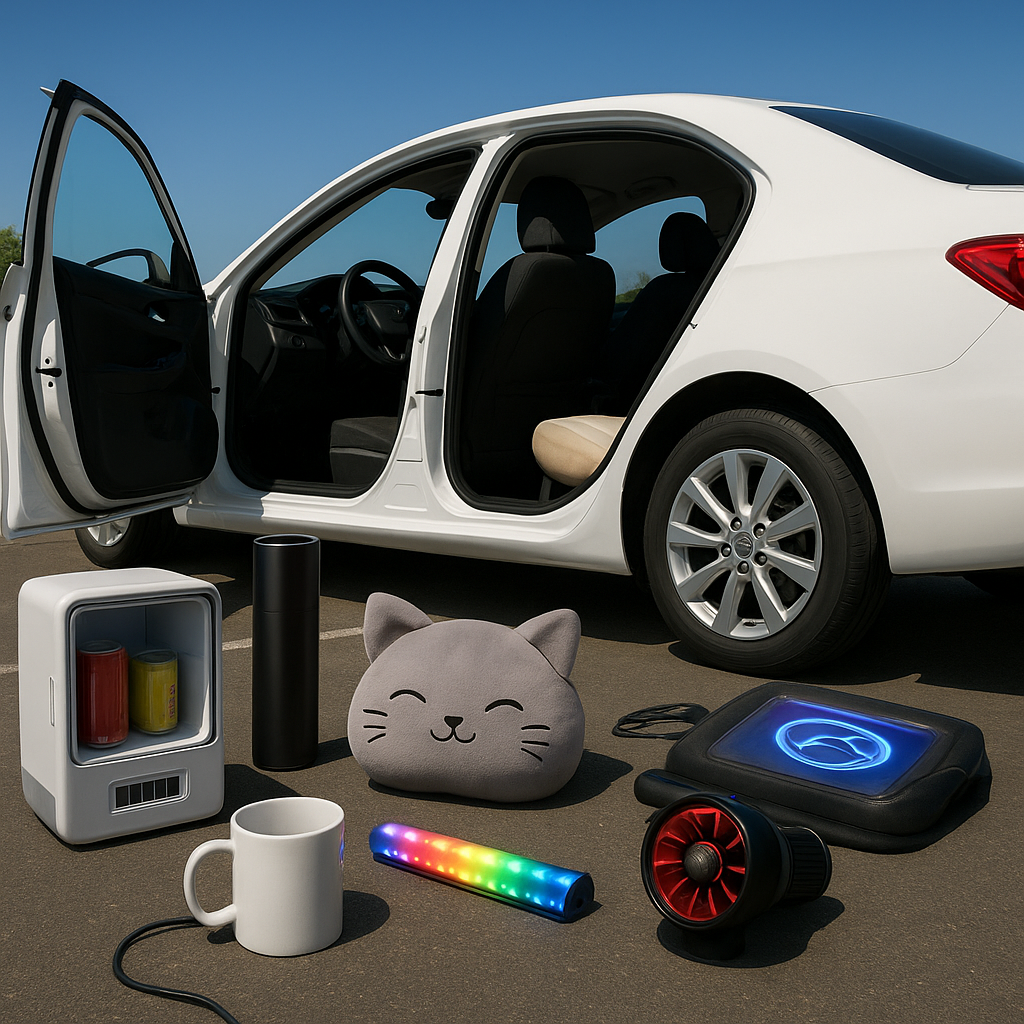 AliExpress — это не просто магазин, это целый мир автоприколов. 😎 Иногда туда заходишь за держателем телефона, а выходишь с подушкой в форме выхлопной трубы и ароматизатором «запах победы». Лови подборку самых необычных автомобильных аксессуаров, которые реально существуют 👇 --- 1️⃣ Подогреваемый держатель для кофе ☕ Кофе больше не остынет даже зимой! Подключается к прикуривателю и поддерживает температуру напитка. 2️⃣ Проектор логотипа на дверь 🚪 Открываешь дверь — и на асфальт светится логотип твоей марки. Красиво, пафосно и дешево. 3️⃣ Подушка-подголовник в виде кота 🐱 Для тех, кто скучает по домашним во время поездок. Мягкая, удобная и добавляет +10 к настроению. 4️⃣ Сенсорный очиститель воздуха с подсветкой 💨 Не просто очищает, а ещё мигает разными цветами. Выглядит как гаджет из будущего. 5️⃣ USB-ароматизатор в виде турбины 🚗💨 Включаешь — и турбина реально крутится! А внутри — капсула с ароматом. Красота и польза в одном флаконе. 6️⃣ Мини-холодильник в подлокотни