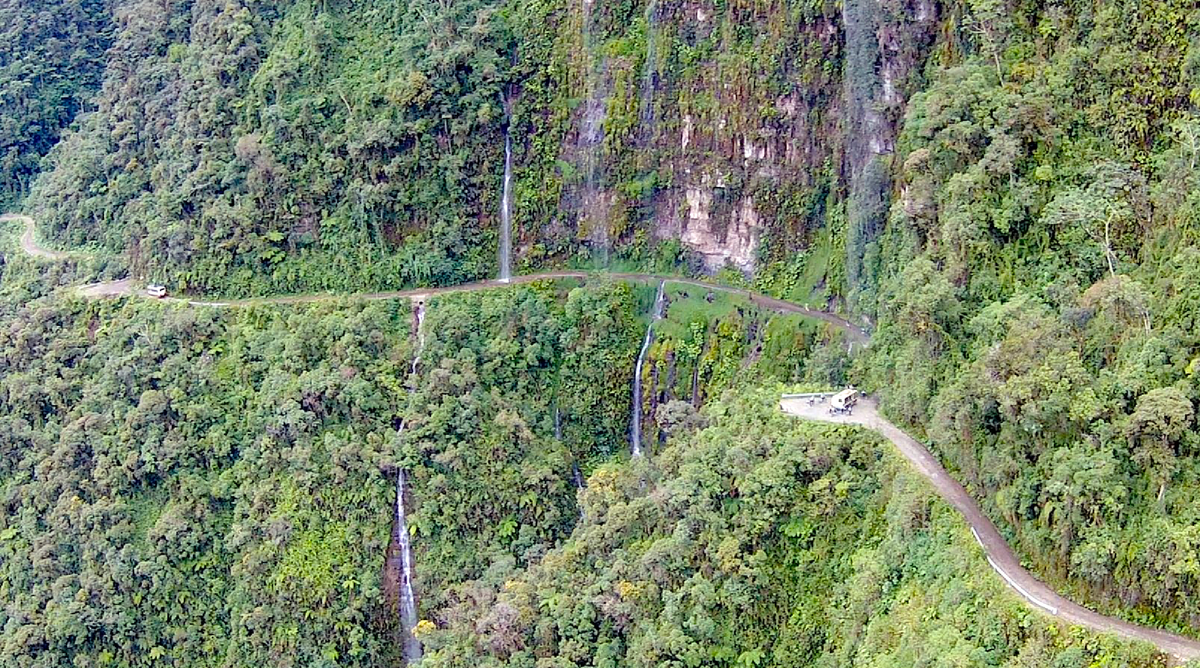 Печально знаменитая дорога смерти, хоть и носит пугающее название, пожалуй является одним из излюбленных экстремальных туристических маршрутов Боливии. Все крупные аварии, связанные с падением автотранспорта в пропасть, освещаемые в новостях зачастую происходили именно здесь. Ежегодно эта дорога уносит 100-200 жизней (к примеру в 2011 году на ней погибло 111 человек). Соединяет она столицу Ла-Пас с городом Коройко. Туристам предлагается маршрут начинающийся с вершины La Cumbre высота которой составляет 4 700 метров и заканчивающийся в городе Коройко, расположенном на отметке 1200 м, длинна маршрута около 70 километров, примерно 18 из которых пройдут по асфальту, данный отрезок является хорошей подготовкой перед основным достаточно рискованным спуском. Велосипеды предлагаемые в прокат вызывают достаточную степень доверия и имеют хорошо амортизированную раму так что езда на них даже по гравийным участкам вполне комфортна , кроме того в дороге вас будет сопровождать автомобиль с запасными