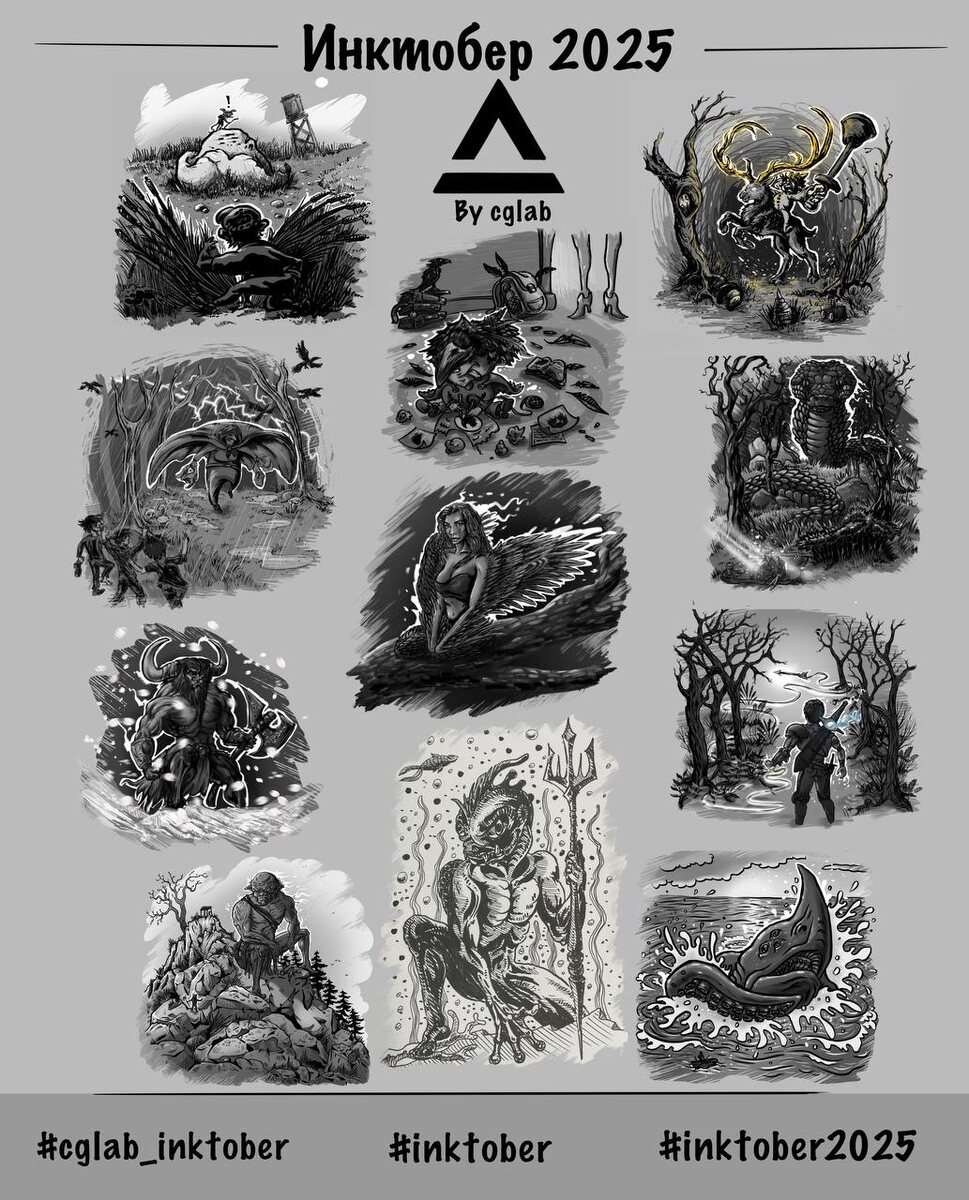 Что хочу сказать, это было интересно! В промежутке я высказывался по поводу inktober by Jake Parker недавними постами выше ⬆️ , но что есть то есть. Итак, для меня это было то ещё именно жизненное испытание вписать каждодневное рисование 🎨 именно по срокам и практике. Идея в целом неплоха, но жизнь задаёт свой темп и иногда ты настолько морально выжат, что поднимать руку будь то с кистью, пером или стилусом в купе с синхронизацией воображения и мыслями о том «чтобы и как нарисовать» ну совсем никак. Насиловать себя точно не стоит, иначе удовольствие и весь этот вайб превратится в каторгу и ненависть ко всему сущему, включая и вообще ремесло. Так что, по мере возможности я выдал 11 иллюстраций из 31. Но, получил уйму опыта и понимания единства пайплайна, который у меня выбился и менялся. Стиль рисования тоже прыгал. Изначально задратая планка в плане участвовать в нескольких челленджах одновременно отпала на 2-3 день и в итоге пошло все по одному пути.