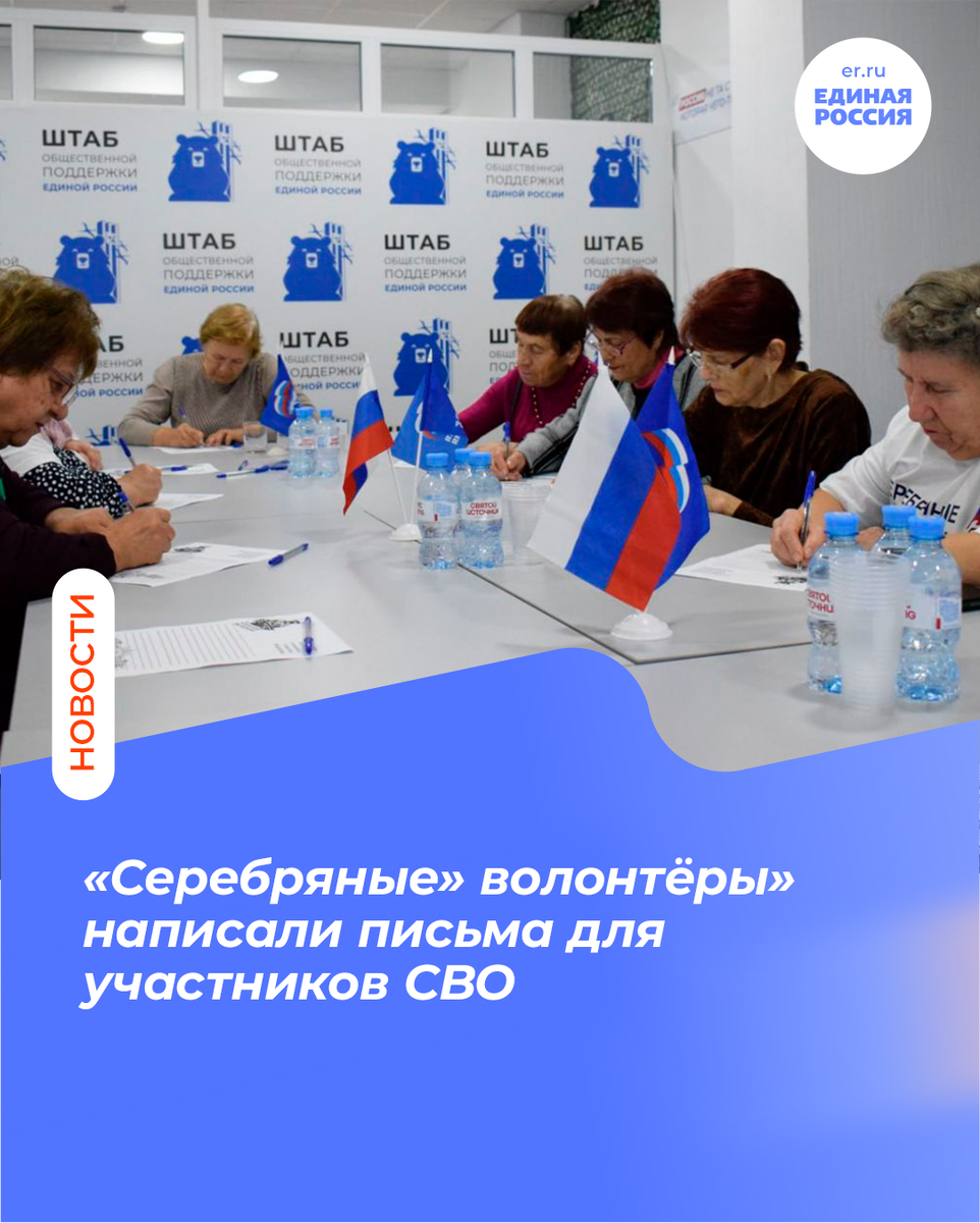 В преддверии Дня народного единства по инициативе депутата городской Думы Ирины Видиной представители старшего поколения Октябрьского района присоединились к сбору гуманитарной помощи. Встреча была организована на базе Штаба обществестенной поддержки «Единой России». «Серебряные волонтёры» написали письма с тёплыми пожеланиями и словами поддержки в адрес военнослужащих, находящихся в зоне проведения специальной военной операции.