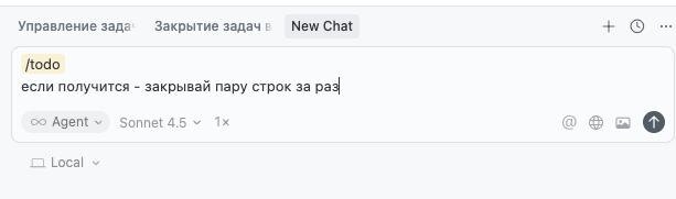 Команды в cursor, это что я делал когда платил за supercode (экстеншен такой для курсора) - теперь в коробке живут И это класнная тема - нужно использовать по максимуму Вот для примера промпт Под капотом содержимое команды "todo" Ну т.е. вы создаете афигенно здоровый пошаговый план разработки - а потом 1 запросом его реализуете (просто несколько раз пишете в чат одно и то же) #cursor