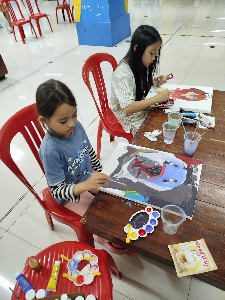 Первого ноября на выставке уже было тихо, но редкие посетители торгового центра заглядывали посмотреть, кто это там рисует. Некоторые даже интересовались стоимостью занятий, кто-то записался. Удивлялись наличию курсов русского языка. Амира дорисовывала картину, начатую ещё во время выставки. А девочка рядом начала свою ещё раньше Амира свою дорисовала Называется "Голова призрака" - такое название она придумала. И ещё доделала совместную с другим художником картину А я начала новую картину. Решила попробовать совсем абстракцию Завтра буду доделывать, а Амира будет рисовать новую картину. После занятия зашли в магазин игрушек, купили капибару за 250 рублей Амира давно хотела, мало ей стада альпак и медведей, Лабубу, двух персонажей "Цифрового цирка" и трёх из игры "Мой говорящий Том". Потом съездили в магазин замороженных продуктов - купили стандартный набор: пончики из уби, две упаковки персонажных бапао, упаковку куриных сосисок, мороженое и ещё отак-отак. Я его уже пробовала жарит