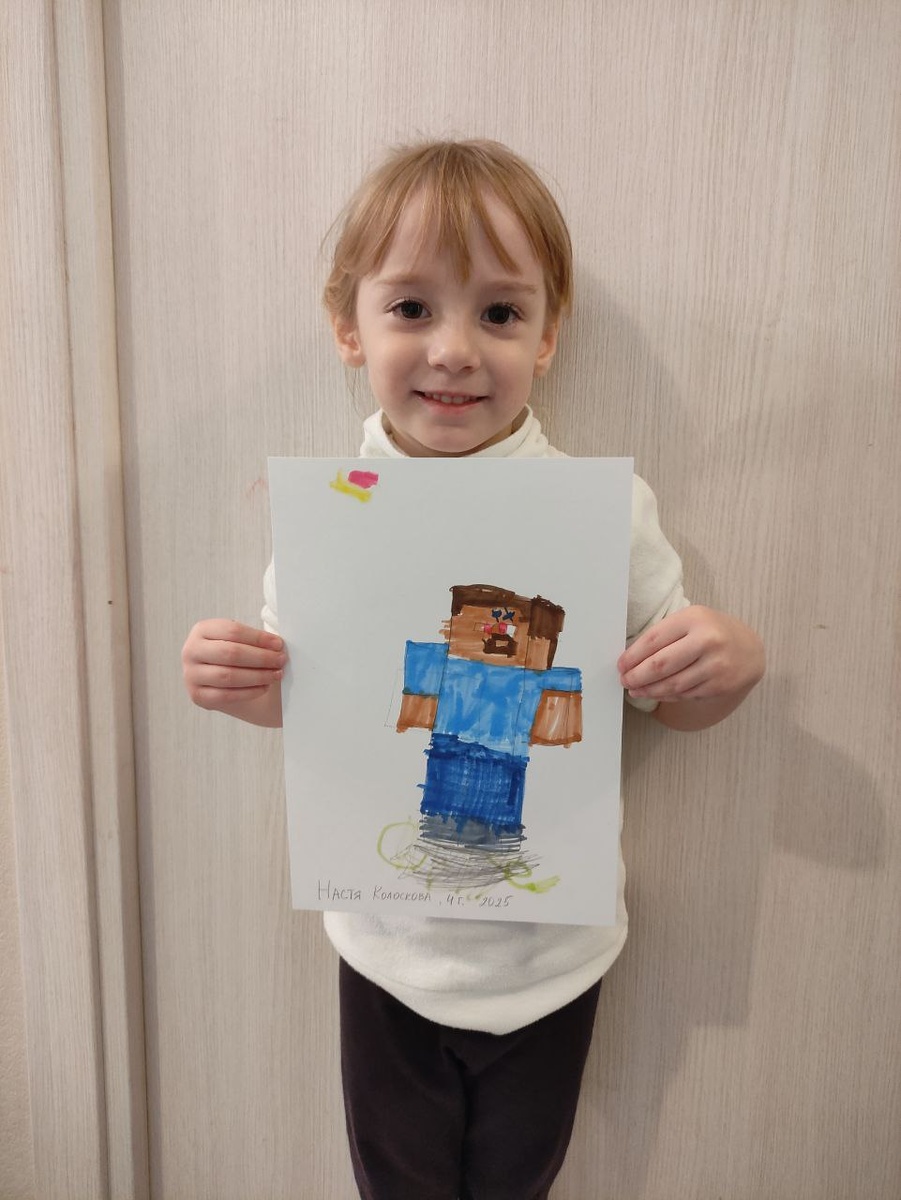 Насте 4 года, любит рисовать Майнкрафт. Очень хотела показать папе Ване)
