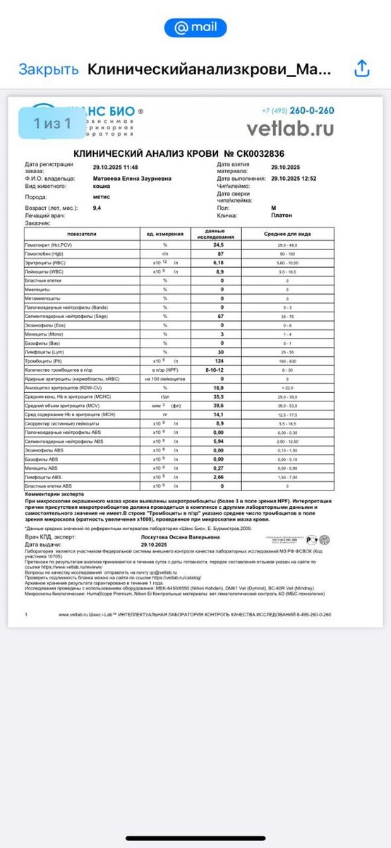 Немного бухгалтерии. Гистология - оказалось дорого, сдала через Ветклинику Комондор, в Лабоклин,потому что это сейчас лучшее, кто есть. Будем результатов. Нам еще теперь к эндокринологу надо повторно. И видимо УЗИ щитовидки тоже придется. Задал задачку мне Платоша! Спасибо всем, что вы тут, со мной и помогаете! Спасибо! ❤️❤️❤️ Ночь была у меня тяжелой... Да и вообще дни тревожные и огромные спасибо, что я не одна и вы со мной рядом.