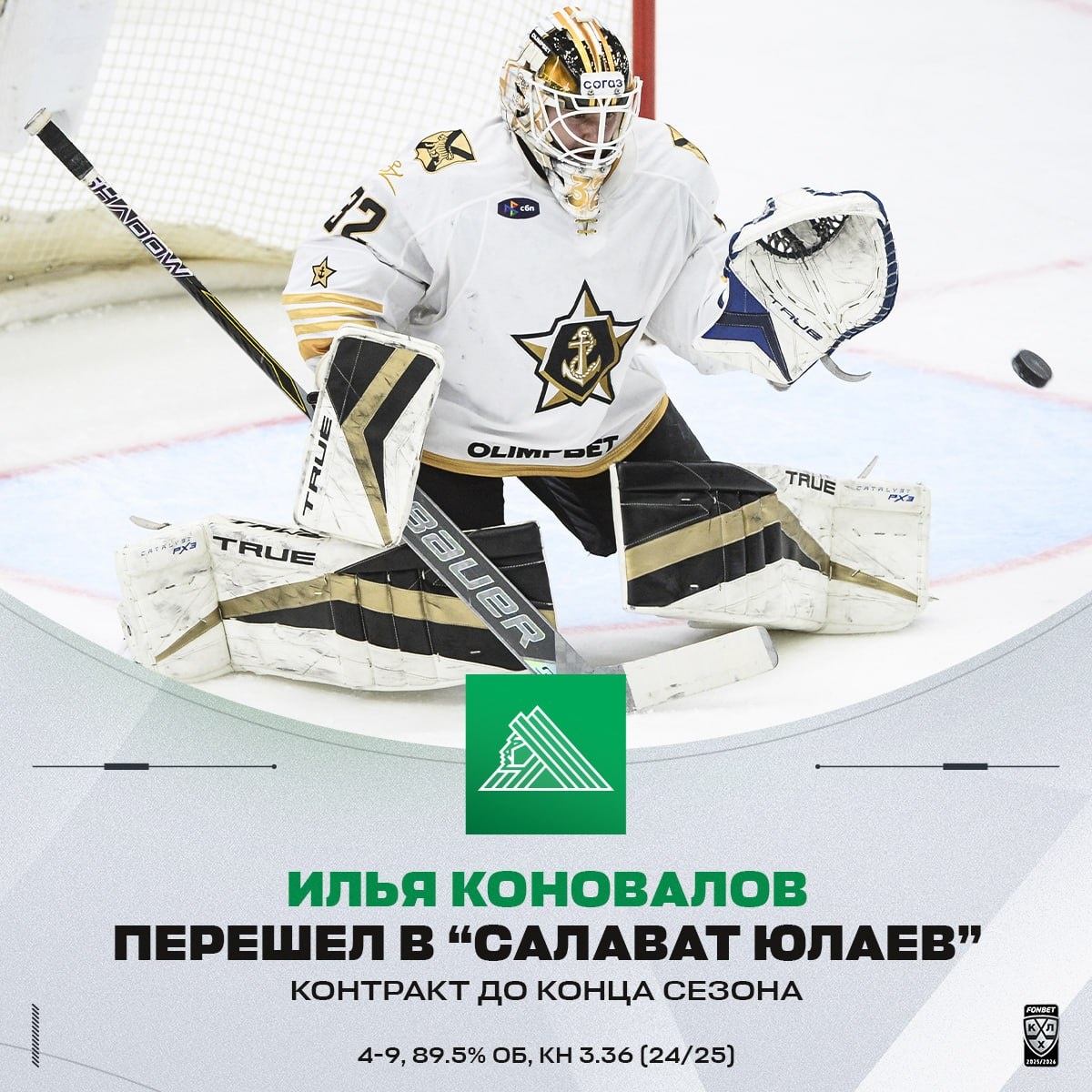 У «Салавата Юлаева» прибавление во вратарской бригаде: зеленый цвет примерит Илья Коновалов 💚
