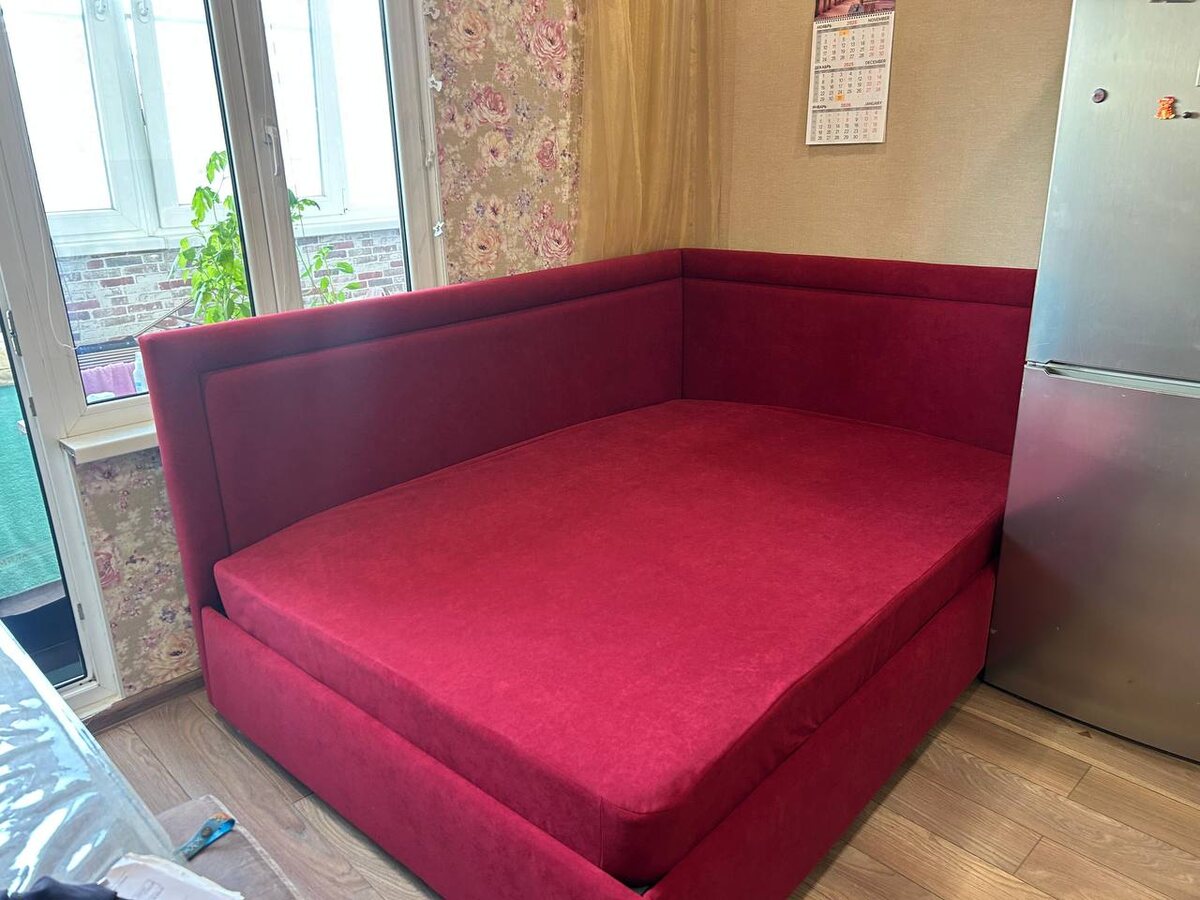 Яркая кровать «Элегант углова» с наматрасником того же цвета,что и сама кровать делает из нее 2в1 ,днем можно использовать как зона отдыха с диваном ,а ночью полноценное спальное место с удобным матрасом 👍🏻