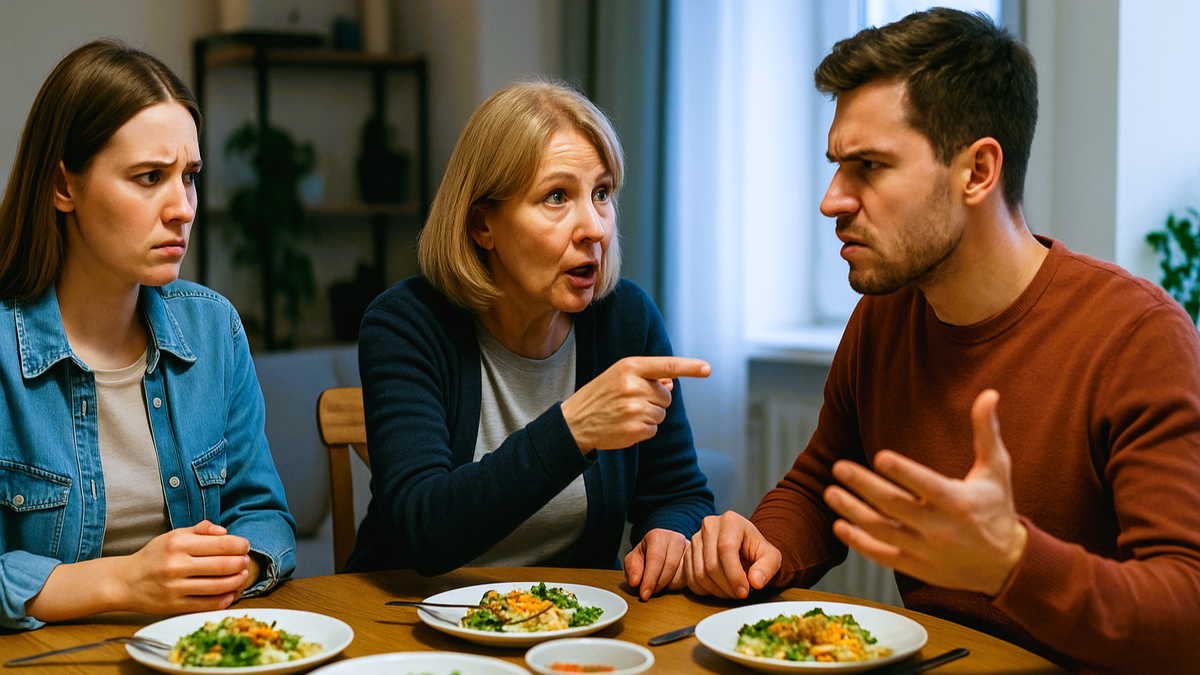 На кухне пахло жареным луком, борщом и свежеиспечённым хлебом. Казалось, что всё как всегда — тихий семейный вечер, но воздух был натянут, словно перед грозой. Мать с сыном и его женой сидели за столом, молча ковыряя вилками еду. В углу тикали часы, отмеряя каждую неловкую минуту.