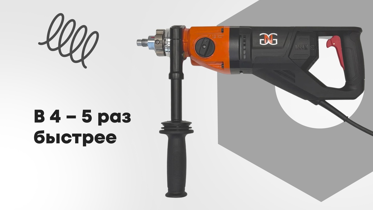 Как в 4 – 5 раз быстрее сверлить твердые материалы: армированный бетон, кирпич, камень? Поможет новинка от GNG – дрель для сухого и мокрого сверления с микроударом GNC-CD150-WDI. МИКРОудар – МАКСИвозможности GNC-CD150-WDI использует импульсную технологию: делает мелкие, но частые микроудары. Так удается гораздо быстрее и эффективнее сверлить твердые материалы. Можно прикладывать меньше усилий и избежать разрушения структуры материала. И сухое, и мокрое сверление Дрель комплектуется насадкой для пылеудаления при сухом сверлении. Она универсальная – есть резьба на 1/2 и 1 1/4 дюйма. Часто используете мокрое сверление? Дрель GNC-CD150-WDI справится и с этой работой. Нужно только докупить специальную насадку для подачи воды – GNG GNWACDM18. Она будет подавать воду в зону сверления, чтобы охладить оснастку и удалить частицы высверливаемого материала. Коронка прослужит гораздо дольше, а отверстия получатся более гладкими, точными и без сколов. Двойная защита от закусывания В конструкции др