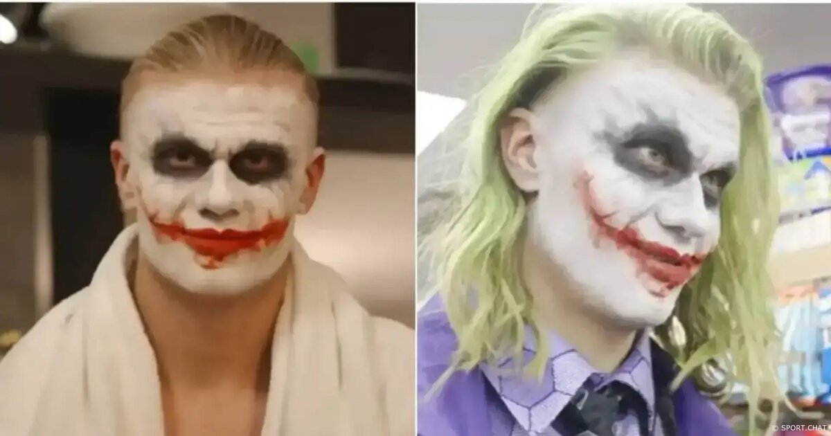 В новом ролике на своём YouTube-канале, который стал вирусным, норвежец показал себя вне поля — в гриме, с зелёными волосами и в фирменном фиолетовом костюме Джокера.