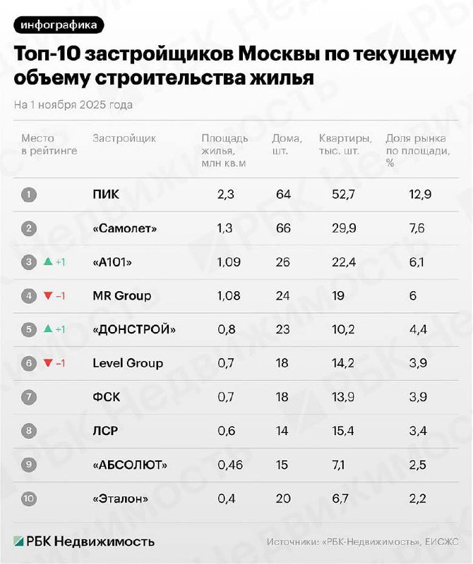 πͺ Π ΠΠ: ΠΈΠ·ΠΌΠ΅Π½Π΅Π½ΠΈΡ Π² ΡΠΎΠΏΠ΅ Π·Π°ΡΡΡΠΎΠΉΡΠΈΠΊΠΎΠ² ΠΠΎΡΠΊΠ²Ρ π΅ ΠΠ Β«Π101Β» ΠΏΠΎΠ΄Π½ΡΠ»Π°ΡΡ Π½Π° ΡΡΠ΅ΡΡΠ΅ ΠΌΠ΅ΡΡΠΎ, Π²ΡΡΠ΅ΡΠ½ΠΈΠ² MR Group Π½Π° ΡΠ΅ΡΠ²ΡΡΡΡΡ ΠΏΠΎΠ·ΠΈΡΠΈΡ, Π° ΠΠ Β«ΠΠΠΒ», Β«Π‘Π°ΠΌΠΎΠ»Π΅ΡΒ» ΠΈ Β«Π101Β» Π»ΠΈΠ΄ΠΈΡΡΡΡ ΠΏΠΎ ΠΎΠ±ΡΠ΅ΠΌΠ°ΠΌ ΡΡΡΠΎΡΡΠ΅Π³ΠΎΡΡ ΠΆΠΈΠ»ΡΡ Π² ΠΠΎΡΠΊΠ²Π΅.