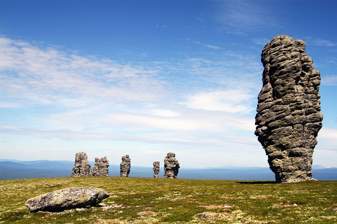 Глубоко в таежных лесах Республики Коми, в одном из самых труднодоступных уголков России, на плато Маньпупунёр стоят семь каменных исполинов. Эти гигантские столбы высотой с 15-этажный дом на протяжении веков были священным местом для коренных народов, а сегодня входят в список Семи чудес России и охраняются ЮНЕСКО . Место, куда раньше могли подниматься только шаманы, теперь манит отважных путешественников своей первозданной красотой и мистической аурой. Маньпупунёр – это геологический памятник, представляющий собой группу из семи каменных столбов-останцев на плоской вершине горы . Научное объяснение происхождения столбов существует не так давно, а коренные народы манси веками складывали о них свои легенды, передавая их из поколения в поколение . Легенда о великанах – самая известная из них. Она гласит, что семь великанов-самоедов шли через горы с целью уничтожить народ манси-вогулов . Когда они поднялись на священную гору Ялпынгер, их вождь-шаман увидел перед собой священную для манс