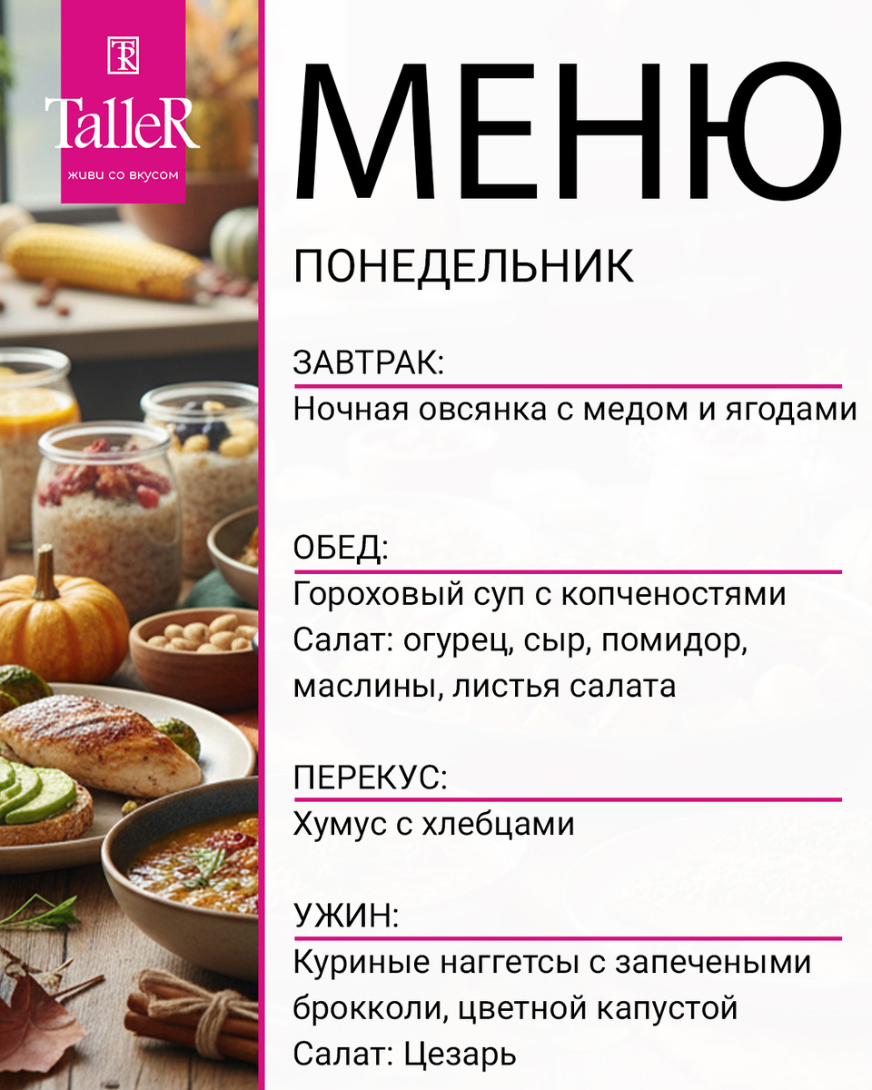 🍽 Недельное меню от TalleR: энергия для вашей семьи! Не тратьте силы на раздумья — мы уже всё продумали за вас!Сбалансированные блюда