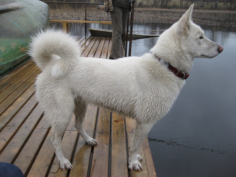 И поскольку у нашей собаки на картинке хвост крючком (и еще каким) а мордочка вытянутая, она уверенно попадет в категорию "не киски".