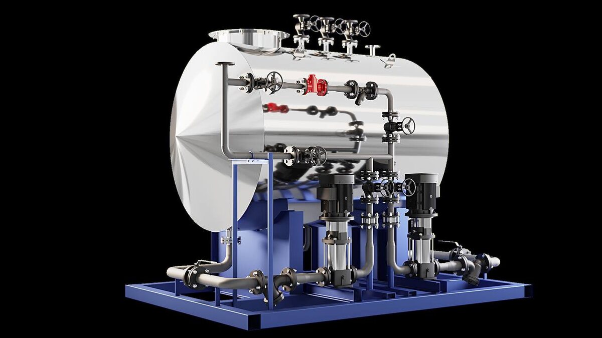 Назначение: Станция обеспечивает сбор конденсата с паропроводов котельной или технологического оборудования предприятия и возврат его в систему теплоснабжения. Это решение позволяет значительно сократить затраты на подпитку системы из водопроводной сети и повысить общую энергоэффективность котельного комплекса.