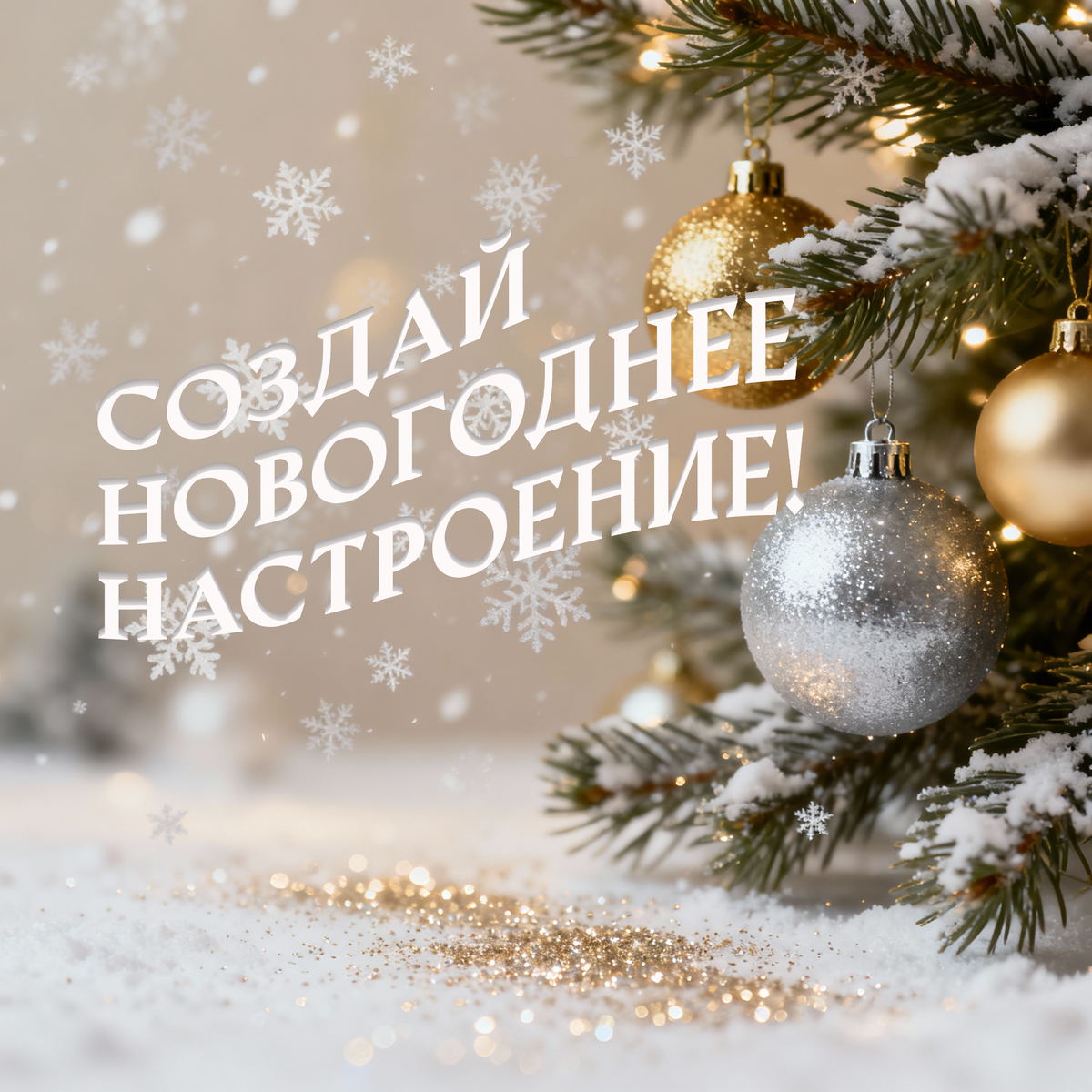 Новогоднее настроение — это не только запах мандаринов и мерцание гирлянд, но и красивые визуалы вокруг! Сейчас, пока до праздника еще есть время, можно вдохновиться и создать неповторимую атмосферу дома, в соцсетях и даже среди коллег — оригинальными новогодними открытками, баннерами или виртуальными подарками. В этой подборке вы найдете 10 стильных промптов для генерации элегантных новогодних композиций — без мультперсонажей, исключительно с атмосферой уюта и волшебства. Используйте их для своих соцсетей, оформления рассылок, сторис или даже для печати на подарках! 1.Минималистичная новогодняя композиция: одна ветка ели, пара блестящих золотых шариков, снежинки на белом фоне, мягкое сияние и современный чистый стиль.