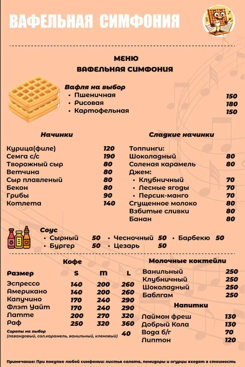 Любите вафли? Загляните в наше меню — у нас множество вариантов начинок: сладкие, сытные и авторские