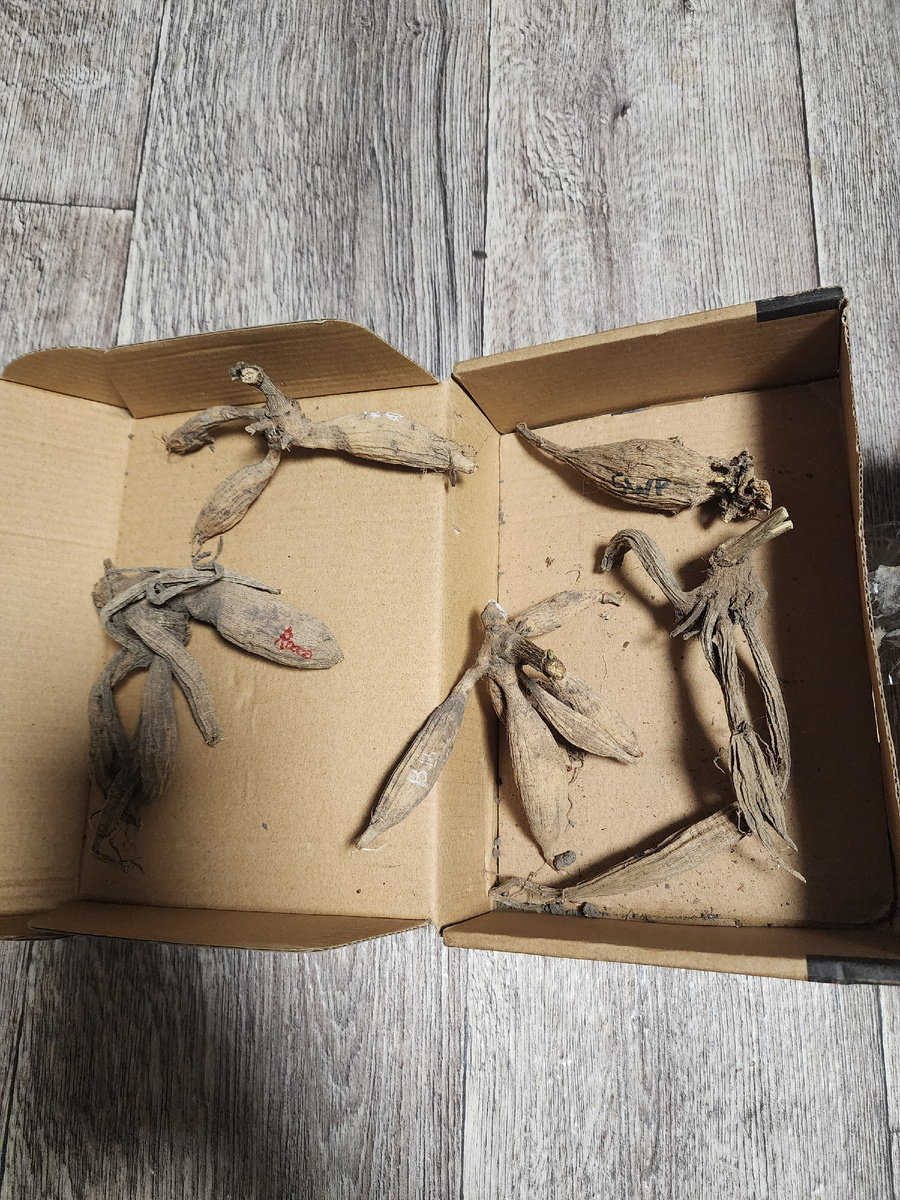 Упаковка имеет важное значение ☝️ Задачка🤣 : Два разных продавца в одно и тоже время выслали мне посылки, с пункта А , в пункт В. Получилась так, что забрала я обе посылки в один день. Первая посылка, клубни были завернуты в бумагу. Пока шла ко мне, клубни сильно усохли (фото до отправки продавец скидывала, клубни были более сочные😅) Второй продавец подошёл к отправке более ответственно. Клубни упакованы в перелит. Состояние- как будто их только выкопали из земли. Вопрос: Как думаете, какие клубни дольше пролежат и лучше сохраняться? Я понимаю, что перлит стоит денег и каждому за свой счёт такую посылку будет накладно отправлять, но можно заложить упаковку посылки в стоимость. Я лучше доплачу за пересыл и получу более качественный клубень, который дольше пролежит, чем получу "сухарики", которые стоят немалых денег и не факт, что они у меня долежат до весны😔 Ещё перлит и вермекулит при пересыле, можно заменить сухими опилками или сухим мхом, если у кого-то есть такая возможность.