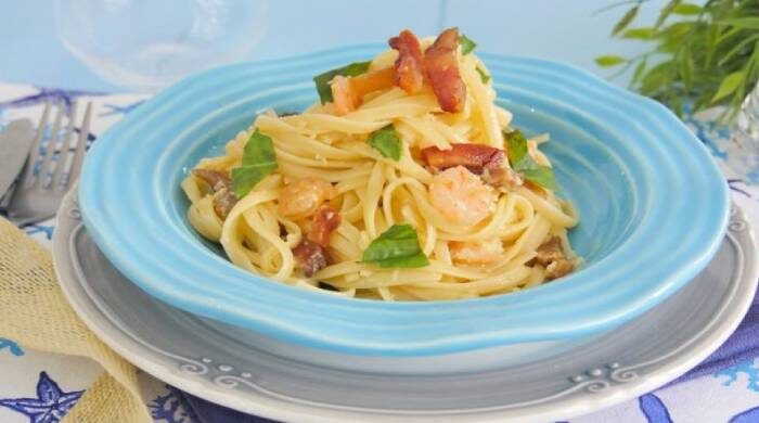 Да, я знаю, что это не настоящая карбонара с спагетти. Но почему бы не попробовать, если вы любитель морепродуктов. Такой вариант мне понравился и я думаю, что он имеет право быть.