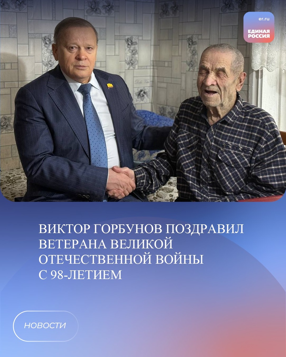 Заместитель Секретаря реготделения «Единой России» Виктор Горбунов поздравил ветерана Великой Отечественной войны Николая Григорьевича Курышина с 98-летием. Вместе с главой Порецкого округа Евгением Лебедевым Виктор Горбунов выразил ветерану слова бесконечной благодарности и глубочайшего уважения. «Низкий поклон Вам, Николай Григорьевич, за Ваш подвиг, за мужество и стойкость, проявленные в суровые военные годы. Ваше поколение — это пример настоящего героизма и беззаветной любви к Родине. От всей души желаем Николаю Григорьевичу крепкого здоровья, душевного тепла, бодрости духа, внимания и заботы близких. Пусть каждый ваш день будет наполнен миром и благополучием!» - пожелал Виктор Горбунов. #ЕР21 #ЕРЧувашия