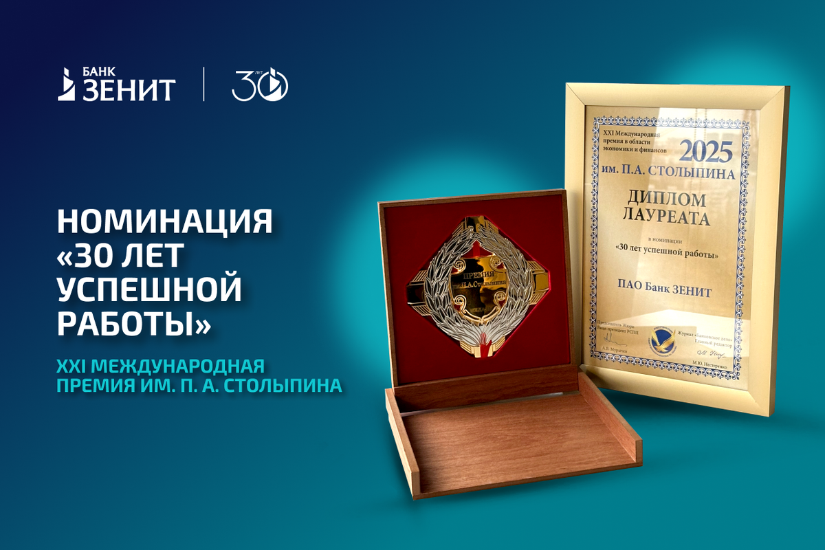 Банк ЗЕНИТ стал лауреатом номинации «30 лет успешной работы» XXI Международной премии журнала «Банковское дело» в области финансов, промышленности и экономики имени П. А. Столыпина.