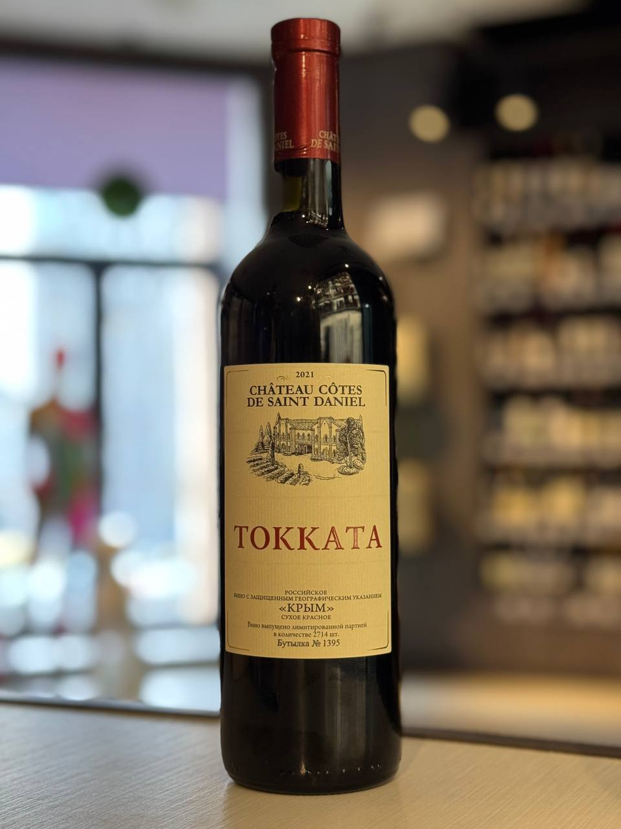 Красное сухое вино Chateau Cotes de Saint Daniel "Toccata" создано из трёх сортов винограда — Каберне Совиньон, Саперави и Бастардо Магарачский, каждый из которых вносит свой характер в стиль напитка. Название «Toccata» символизирует особую гармонию вина, сочетающего мягкость, свежесть и яркую фруктовость.