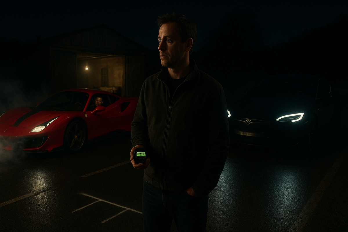 Стою на обочине трассы, держу в руках дурацкий китайский секундомер, который купил на маркетплейсе за триста рублей. Слева от меня Максимка в своём красном Ferrari 488 Pista — взял в лизинг год назад, с тех пор каждую субботу натирает его до блеска. Справа Серый в Tesla Model S Plaid — купил через знакомого дилера, говорит, скидку выбил приличную.