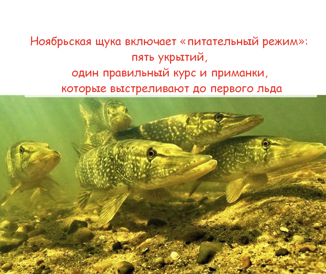 Основа ноябрьской тактики — укрытия. Щука экономит энергию и выбирает позиции, где можно напасть рывком и тут же вернуться в «тихий» уголок. Ищем: