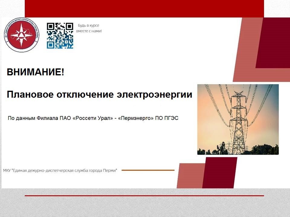 💡Предупреждаем об отключении электроэнергии ➡️ 5 ноября с 9:00-18:00 будет ограничена подача электроэнергии по адресам: 📍Карпинского 35; С 09:00 до 15:00 📍Пр. Парковый , 20/2 ; 24 ☎️Телефон "горячей линии" ПГЭС 8 (800) 220-02-20