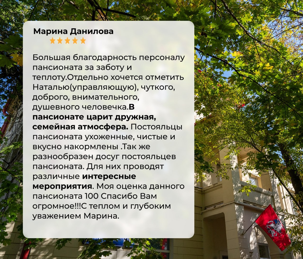 Мы рады получать ваши отзывы ❤️ Спасибо, что доверяете нам своих близких! 📞 Для консультации с менеджером и записи на экскурсию в пансионат звоните: +7 (495) 151-00-68