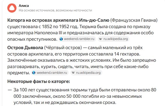 Заметим, что статья, как и «Алиса» начинает историю каторжников с Наполеона III, хотя история лагеря смерти начинается гораздо раньше.