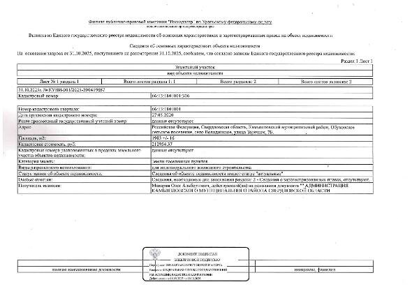 Название: Российская Федерация, Свердловская область, Камышловский муниципальный район, Обуховское сельское поселение, село Володинское, улица Заречная, 7Б, из категории земель – земли населенных пунктов, общей площадью 1983 кв.м., с кадастровым номером 66:13:1801001:306, разрешенный вид использования: для индивидуального жилищного строительства. Канал: Госземля Свердловская область Область: обл Свердловская Район: м.р-н Камышловский Населенный пункт: с.п. Обуховское, с Володинское, ул Заречная, з/у 7Б Локация: Смотреть на карте ВРИ: Для индивидуального жилищного строительства Кадастровый номер: 66:13:1801001:306 Кадастровая стоимость: - Вид сделки: Продажа Площадь: 1983 м² Начальная цена: - руб. Дата завершения: 01.12.2025 Подробнее: ГИС ТОРГИ #госземля #земляотгосударства #земля #земельныйучасток #земельныеторги #торги #аукцион #продажаземли #продажа #свердловскаяобласть