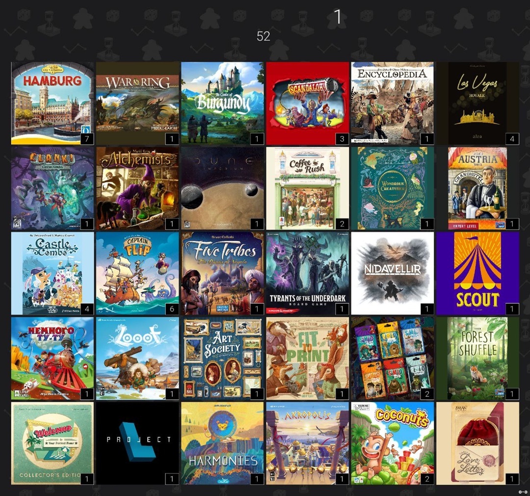 В этом месяце сыграли 52 партии в 30 игр. Из них 4 новые: Гамбург, Энциклопедия, Время Кофе, Кокосики.