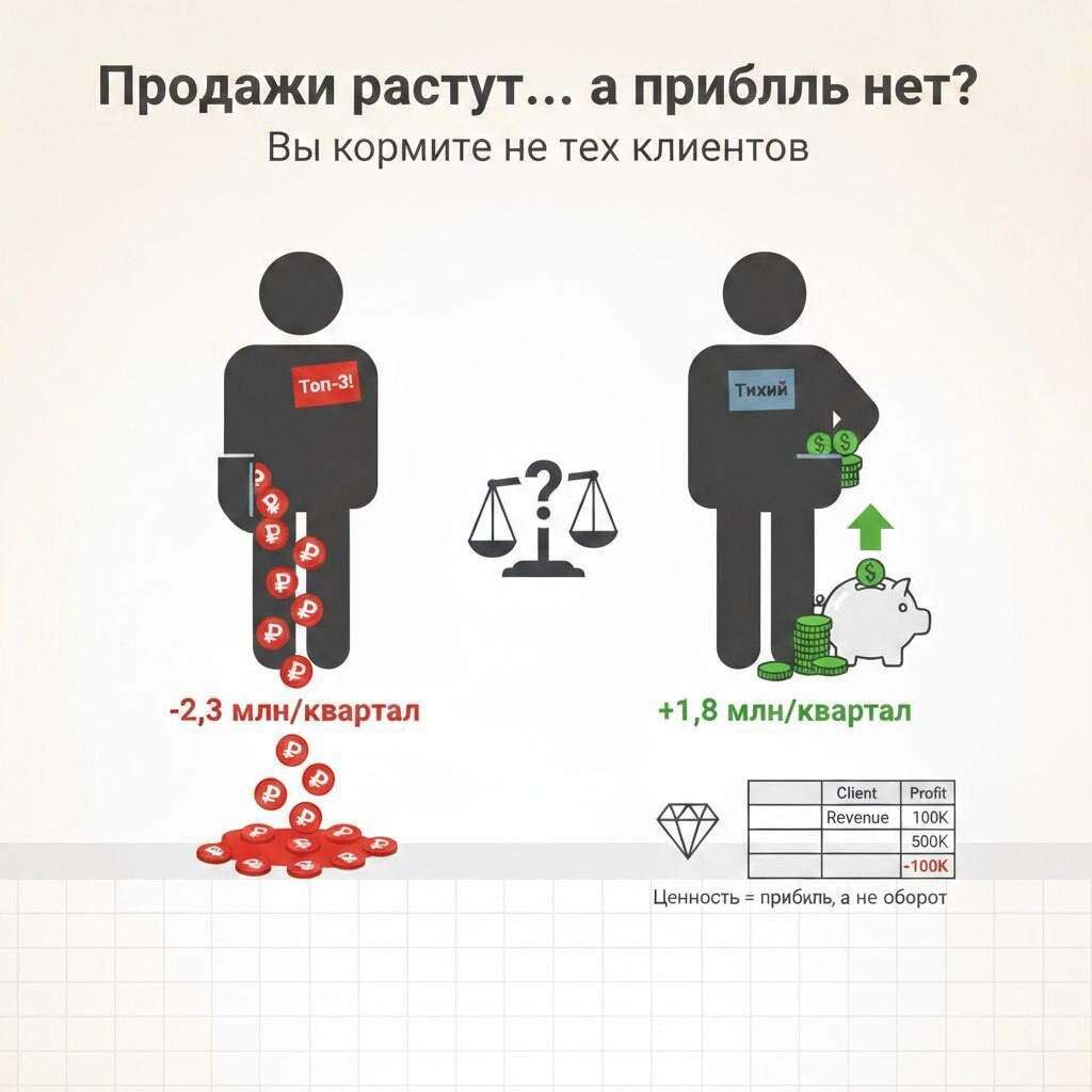 Продажи растут, а прибыли всё меньше? Возможно, вы кормите не тех клиентов 💥 Продажи растут, а прибыли всё меньше? Возможно, вы кормите не тех клиентов. Вы когда-нибудь замечали такую странную вещь: