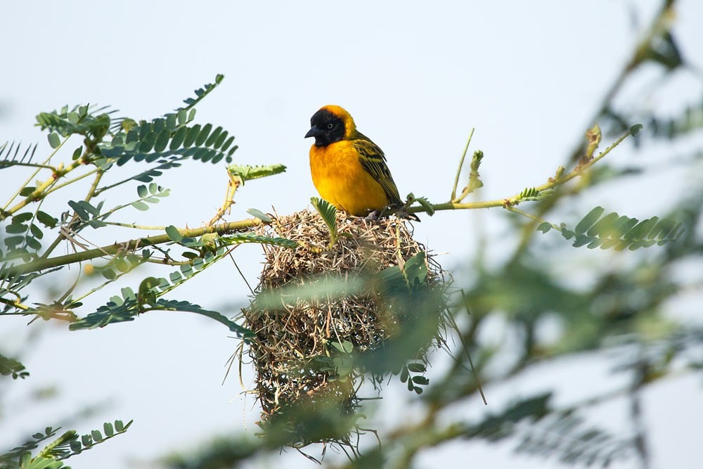 Ткачики Эти птицы ткут из тонких трав и паутины плетеные гнёзда. Конструкция прочная и гибкая, способная выдерживать ветер и дождь. Они в изобилии водятся на территории ЮАР, Намибии и Ботсваны. Жилища обыкновенных ткачиков имеют неправильную форму и достигают 3-4 метров, а гнезда больших колоний могут разрастаться до 8-ми метров в ширину. #удивительныймир