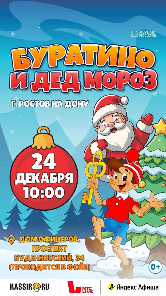 ✨ Новогодний сюрприз для детей в Ростове! 24 декабря в 10:00 Новогодняя сказка «Буратино и Дед Мороз» 0+ А в 12:00 и в 15:00 на сцене — захватывающий спектакль «Новогодние приключения Бармалея» 6+ Любимые персонажи, красочные декорации, яркие костюмы, захватывающие сюжеты, веселые песни с танцы! Всех маленьких зрителей ждут подарки, сюрпризы и долгожданная встреча с Дедом Морозом! На все спектакли билеты приобретаются отдельно 📍 Место проведения: Ростов-на-Дону, Дом Офицеров, Буденновский, 34 🗓 Дата и время: 24 декабря, 10:00, 12:00 и 15:00 Приходите всей семьёй и откройте для себя настоящие новогодние приключения! Билеты уже в продаже на kassir.ru Ссылка Буратино https://rnd.kassir.ru/teatr/buratino-i-ded-moroz Ссылка Бармалей https://rnd.kassir.ru/teatr/novogodnie-priklyucheniya-barmaleya