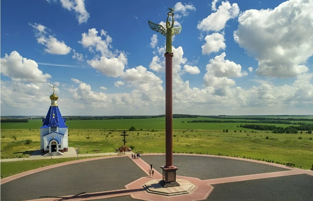 Пока мы гостим у моих родителей решили отправиться на экскурсию к знаменитому памятнику «Ангел Мира», расположенному в живописном месте Курской области. Мемориальный комплекс на Северном фасе Курской дуги находится по адресу село Молотычи Фатежского района Курской области . Одним из выдающихся звеньев художественной композиции является памятник «Ангел Мира». Памятник представляет собой 35-метровую скульптуру. На ее вершине восьмиметровый ангел, который держит венок и выпускает голубя. Венец - символизирует память о павших воинах в годы войны, а голубь призывает к миру, ведь ангел, стоит на крови, на месте гибели солдат. Композиция оборудована подсветкой, поэтому в сумерках открывается красивая картина: создаётся иллюзия парения ангела в небесах. Авторами идеи художественной композиции являются Владимир Васильевич Пронин, Михаил Леонидович Лыткин и Александр Николаевич Бурганов. Оформление священной территории тоже не случайно: красный цвет дорожек и фундамента храма символизируют