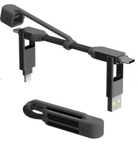 Главная особенность — 4 комбинации подключений. С одной стороны — USB-A и USB-C, с другой — USB-C и Lightning. Такой подход делает кабель совместимым со всеми современными устройствами: Android, iPhone, MacBook, ноутбуками на Windows, пауэрбанками, камерами и даже портативными консолями.
