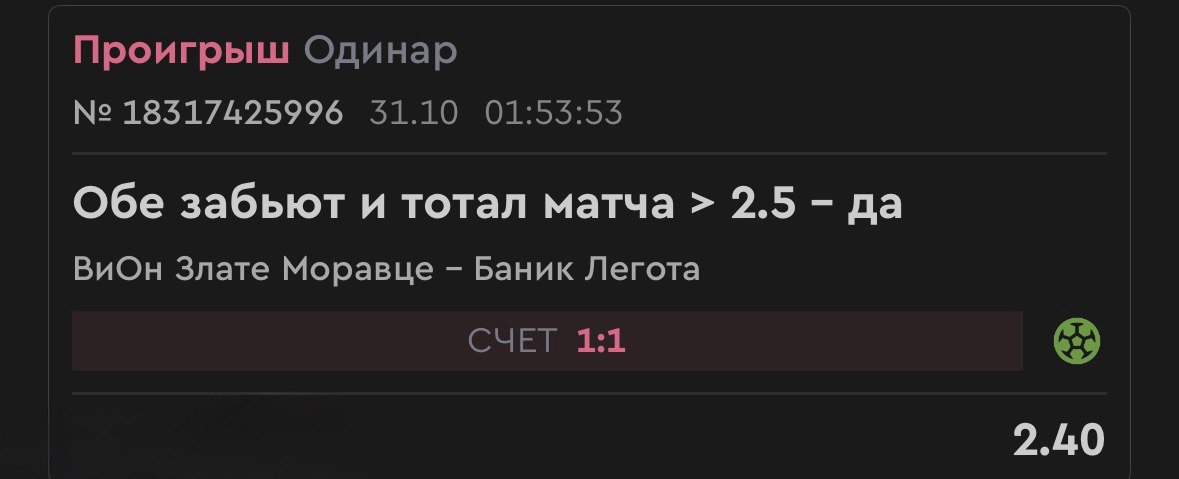 В ответ на пост Почему забирал этот матч? Статистика за ОЗ: ✅ Последние 14 матчей !!! ВиОна (2 место в турнирной таблице) заканчивались с ОЗ! ✅ Последние 7 домашних матчей ВиОна - тоже ОЗ. Команда стабильно и забивает, и пропускает даже дома! Вчера с пенки под занавес игры, да еще от команды с удаленным игроком 😄 ✅ Легота (12 место в турнирной таблице) в последних 3 матчах также пропускала и забивала. Гостям не чужды голы. За ТБ 2.5: ✅ Последние 10 матчей ВиОна в сумме давали больше 2.5 голов ✅ Последние 5 домашних игр хозяев - снова ТБ 2.5 ВиОн был явным фаворитом (победа в 77% случаев), играл дома и имеет мощнейшую атаку (в среднем 2.4 гола за игру). Но их оборона - дырявая, притом для всех (1.8 пропуска в среднем), вчера откровенно играли в ленивый футбол и не настроились на игру 😡 Легота, хотя и аутсайдер, забивает (1.4 в среднем) и смог воспользоваться слабостью защиты хозяев, и заработав пенку за 6 минут до окончания игры, вытянули ничью и добились позора ВиОна, красавц