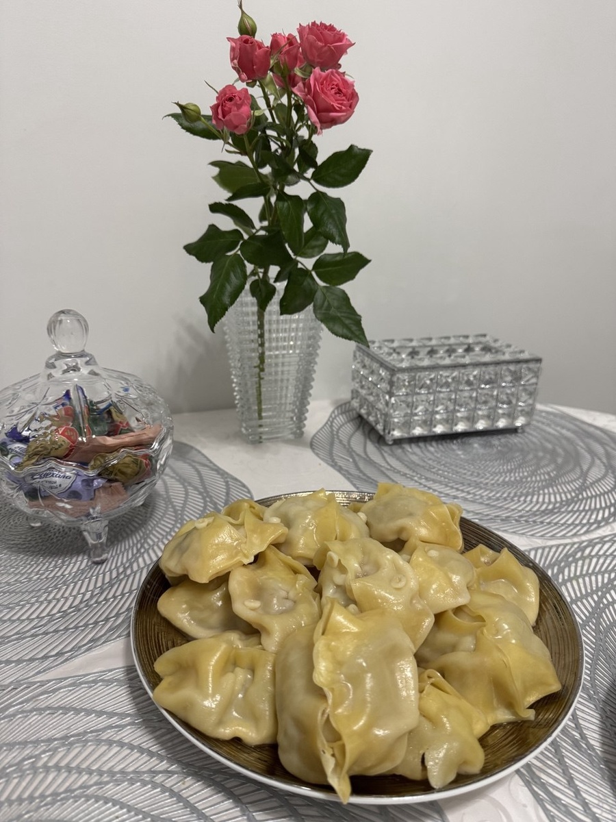 Традиционное азиатское горячее мясное блюдо. Нежное тонкое тесто с сочной начинкой не может не понравиться. Манты готовят на пару 💨 в мантышнице, а едят их руками! Ингредиенты для теста: • пшеничная мука – 1000 г • куриное яйцо – 2 шт. • холодная вода – 500 мл • соль – 2 ч. л. • растительное масло – 4 ст. л. Ингредиенты для начинки: • фарш домашний– 1200 г • репчатый лук – 1000 г • соль – 4 ч. л. • черный молотый перец – 1 ч. л. • молотая зира (кумин) – 1 ч. л. ( по вкусу ) Приготовление: ⁃ Лук очистила и нарезала мелким кубиком. Он играет очень важную роль в начинке, насыщает ее ароматом и соком, поэтому жалеть лука не стоит. ⁃ Мясо и лук соединила в глубокой миске. Добавила соль, перец и зиру, перемолотую в ступке, добавила стакан воды и тщательно вымешала руками, миску накрыла пленкой и отставила в сторону на 20-30 минут при комнатной температуре, чтобы мясо промариновалось в луке и специях. ⁃ Муку просеяла в миску, собрала холмиком и сделала по центру ямку. ⁃ В стакан с л