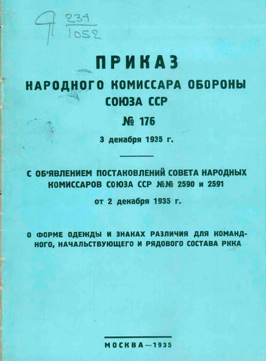 Форма одежды и знаки различия для командного, начальствующего и рядового состава РККА. 1935 год.